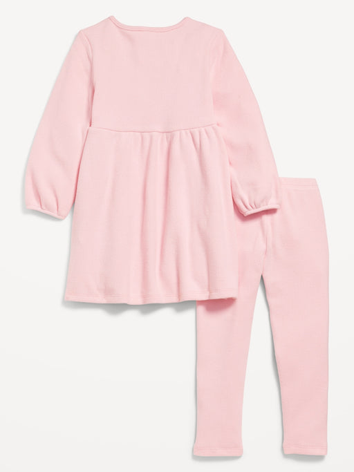 Long-Sleeve Thermal-Knit Dress and Leggings Set for Toddler Girls