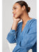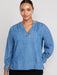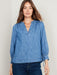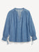 Split-Neck Puff-Sleeve Jean Blouse for Women