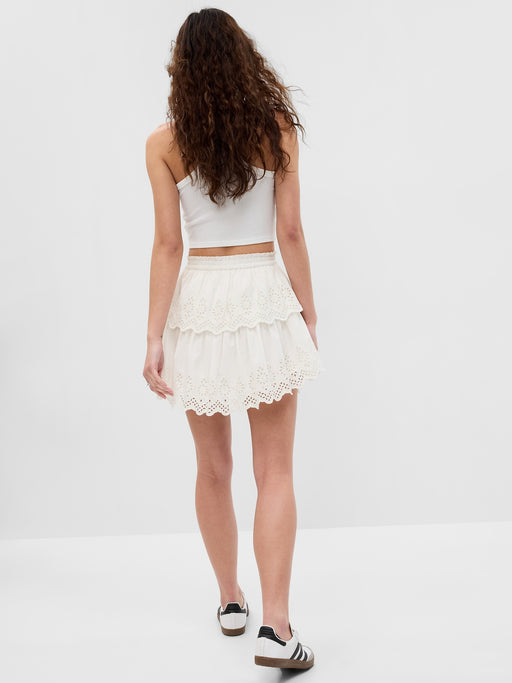 Organic Cotton Ruffle Eyelet Mini Skirt