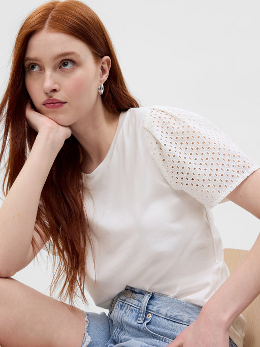 Organic Cotton Vintage Eyelet Puff Sleeve T-Shirt