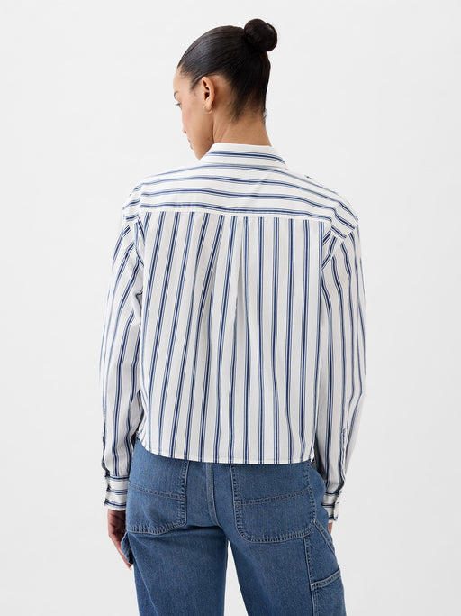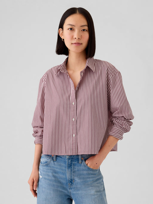 Organic Cotton Poplin Barrel-Sleeve Crop Shirt