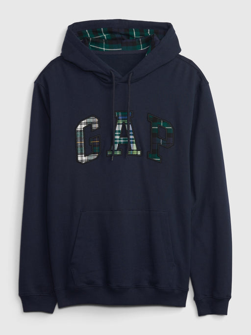 Organic Cotton Cocktail Plaid Gap Arch Logo Hoodie - cocktail plaid navy
