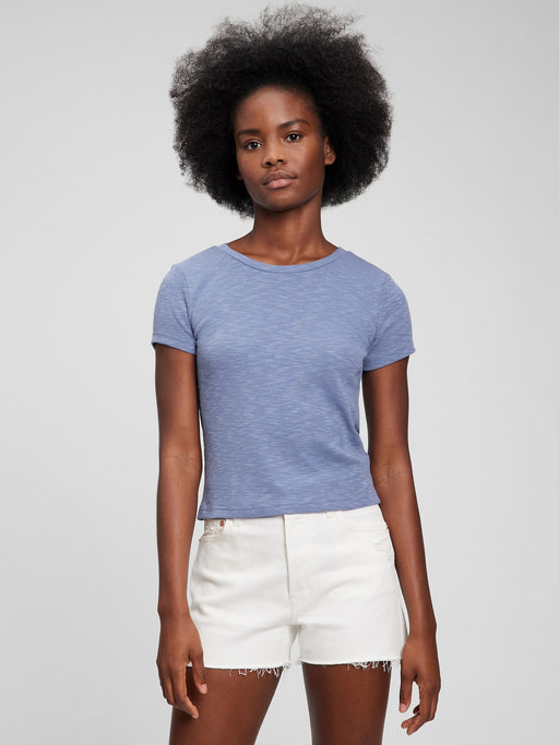 Rib Cap Sleeve T-Shirt - larkspur blue