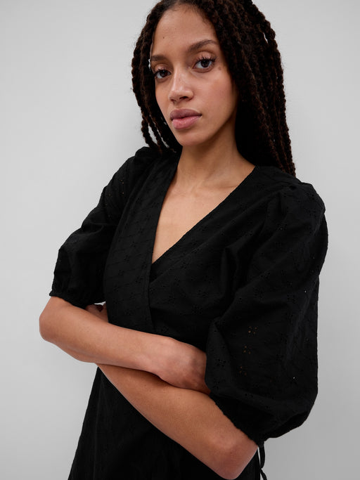 Eyelet Mini Wrap Dress