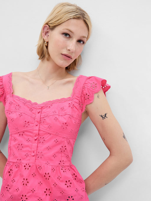 Eyelet Scalloped Mini Dress