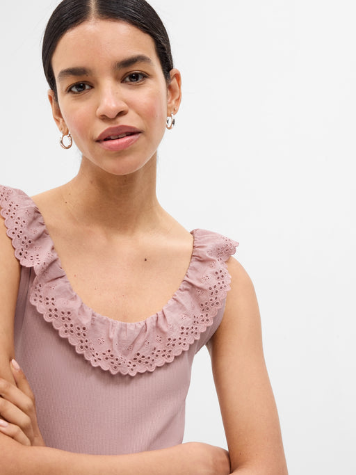 Eyelet Ruffle Neck Rib Tank Top