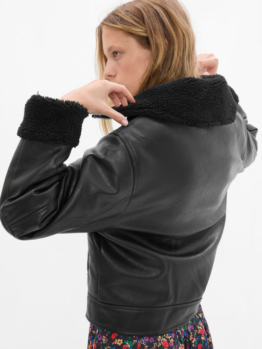 Faux-Leather Sherpa-Lined Moto Jacket