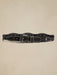 - Adventure comes to life in this luxurious, embellished leather belt with intricately embossed hardware and silver studded accents offsetting a scalloped shape.