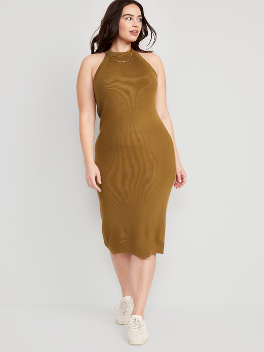 Fitted Sleeveless Rib-Knit Midi Sweater Dress for Women