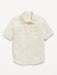 Relaxed fit through body. Boys short-sleeve shirt hits below waist. Models are approximately 4’3” – 4’8” and are wearing size M (numeric size 8).