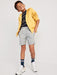 Sits at waist. Straight through hip and thigh. Shortest inseam; boys jogger shorts hit above knee. Models are approximately 4’3” – 4’8” and are wearing size M (numeric size 8).