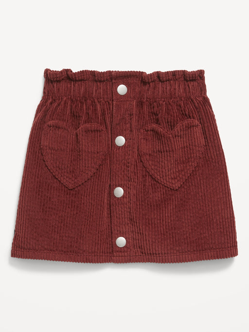 Heart-Pocket Button-Front Skirt for Toddler Girls