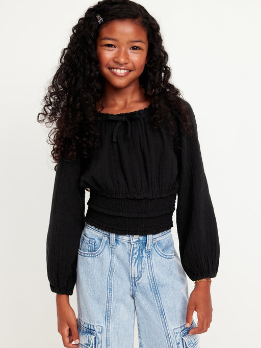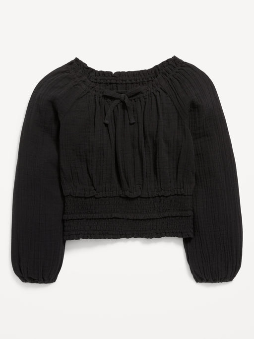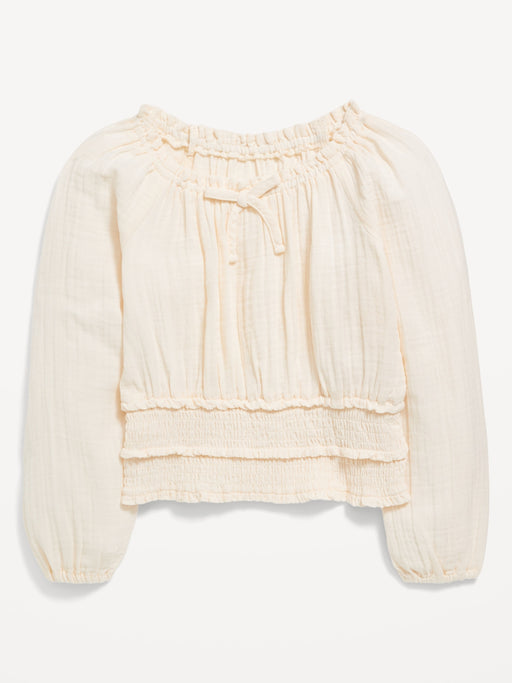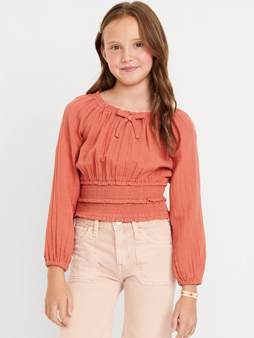 Long-Sleeve Double-Weave Smocked Top for Girls