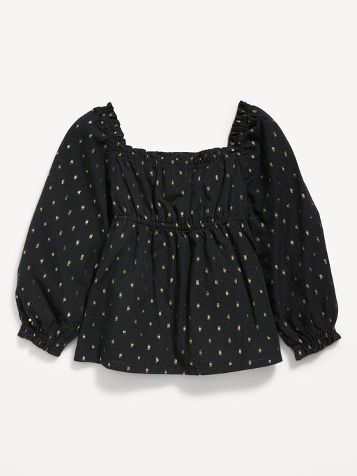 Long-Sleeve Square-Neck Dobby Top for Toddler Girls