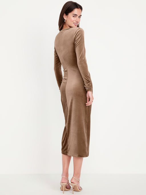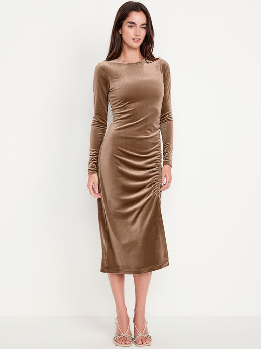 Ruched Velvet Midi Dress