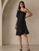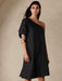 - This uniquely beautiful dress is crafted from seasonally soft and lightweight linen, cut to create a rare off-the-shoulder silhouette balanced by a single, short sleeve for over the shoulder appeal.