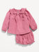 Long-Sleeve Double-Weave Smocked Top & Bloomer Shorts Set for Baby