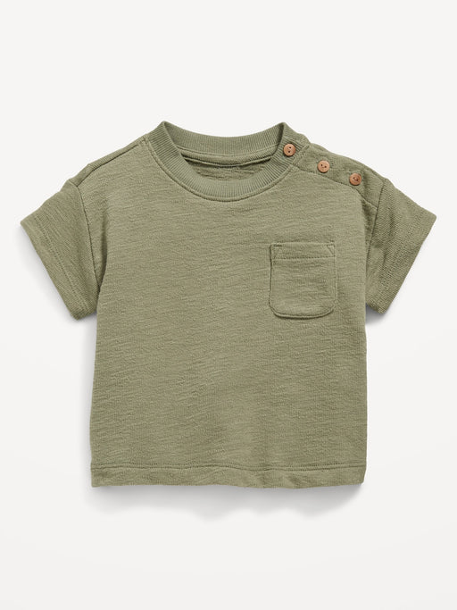 Unisex Solid Buttoned Pocket Textured-Knit T-Shirt for Baby