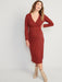 Maternity Long-Sleeve Cross-Front Nursing Midi Dress