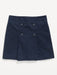 Girls school uniform skort sits at waist. Relaxed through hip and thigh. Skort hits approximately mid-thigh. Model is approximately 4'3" and wearing a size M (numeric size 8).