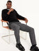 straight thigh and leg hits below ankle model is approx. 6'1" and wears a size 32w x 32l