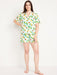 shirt has relaxed fit and hits below waist shorts have relaxed fit and hit high on thigh 2 1/2" inseam models are approx. 5'9" and wear sizes s (4), l (12), and xl (18)