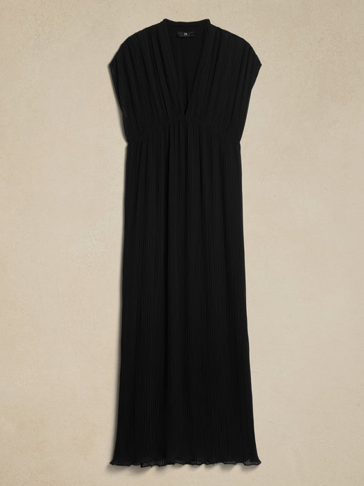 - Glide, sway, and command the room in this gorgeous maxi dress made especially for movement with flowing micro pleats, creating a myriad of folded motion.