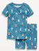 Two-piece pajama set includes short-sleeve printed top and matching bottoms.