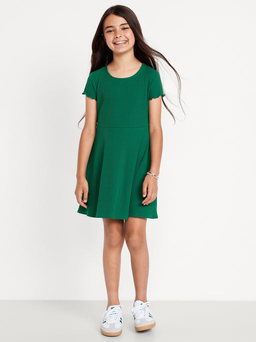 Short-Sleeve Ribbed Fit and Flare Dress for Girls