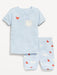 - Two-piece pajama set includes short-sleeve pajama t-shirt top and matching pajama shorts.