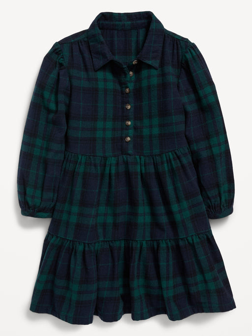 Long-Sleeve Tiered Flannel Shirt Dress for Toddler Girls