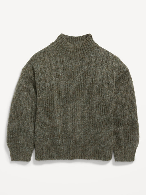 Cozy Mock-Neck Shaker-Stitch Cocoon Sweater for Girls - Green