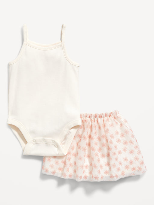 Sleeveless Rib-Knit Bodysuit & Printed Tulle Tutu Skirt Set for Baby