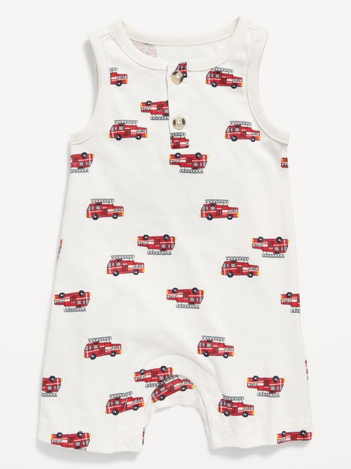 Unisex Printed Sleeveless Jersey-Knit Henley Romper for Baby
