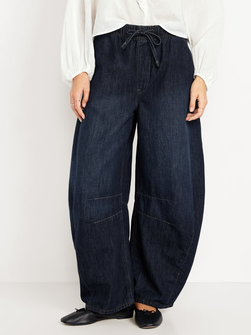 High-Waisted Pull-On Barrel Jeans