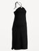 - Tie-neck halter straps, with shirred O-ring center cutout.