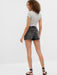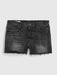 - Look: A five-pocket denim short in a black wash with fading. Raw hem.