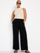 sits at belly button relaxed hip and thigh wide leg hits below ankle 29" regular inseam 27" petite inseam 32" tall inseam models are approx. 5'9" and wear sizes s (4), l (12), and xl (18)