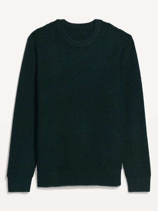 • Cozy Waffle-Textured Crew-Neck Sweater for Men - Green