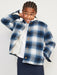 Gender-Neutral Cozy Plaid Flannel Sherpa-Lined Shacket for Kids - Blue