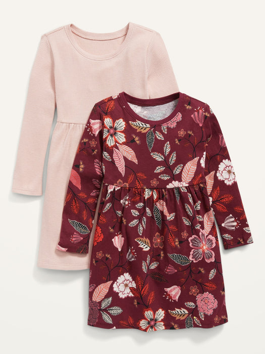 2-Pack Fit & Flare Long-Sleeve Printed Dress for Toddler Girls