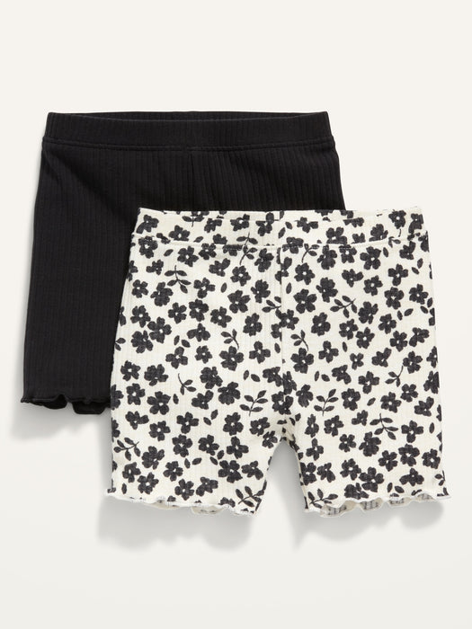 2-Pack Rib-Knit Lettuce-Edge Biker Shorts for Toddler Girls