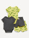 - Set includes 2 graphic/solid bodysuits and 2 pairs of coordinating pull-on shorts.