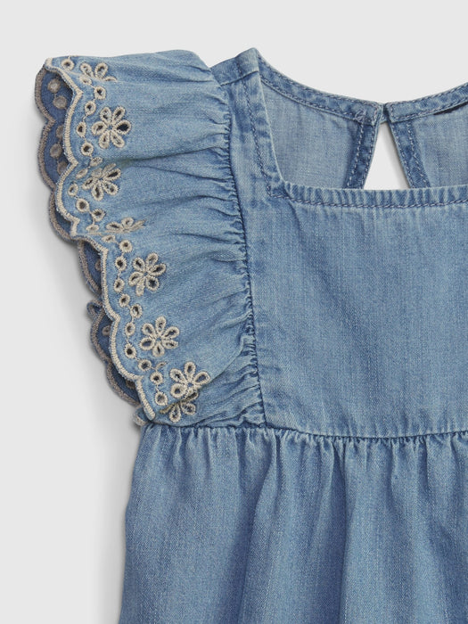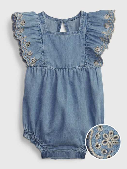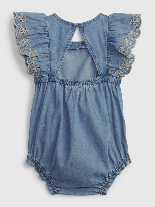 Baby Eyelet Bubble Denim Shorty One-Piece with Washwell