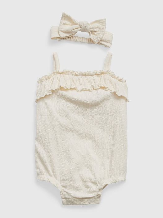 Baby Ruffle Bubble Shorty Set - ivory frost
