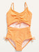 Cinch-Tie Center-Front Cutout One-Piece Swimsuit for Girls