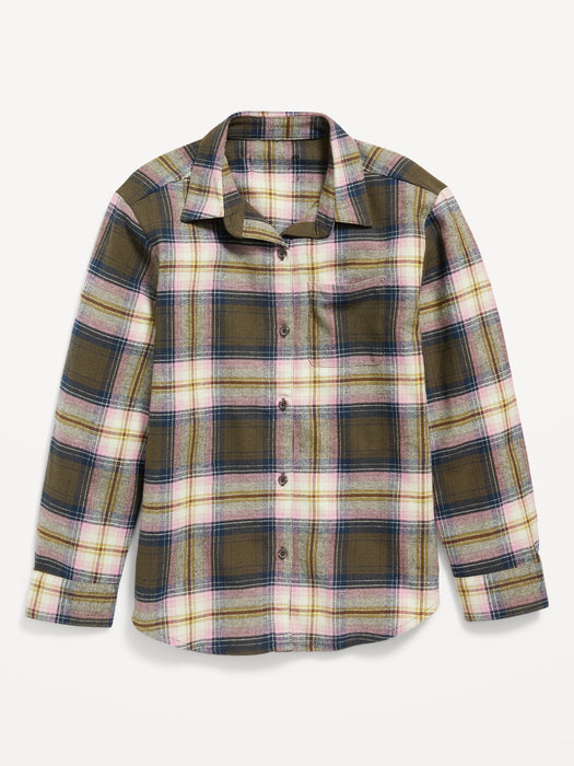 Cozy Long-Sleeve Button-Front Plaid Shirt for Girls