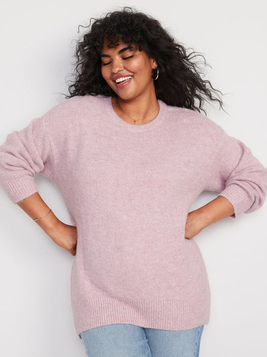 Cozy Plush-Yarn Cocoon Tunic Sweater for Women - Pink