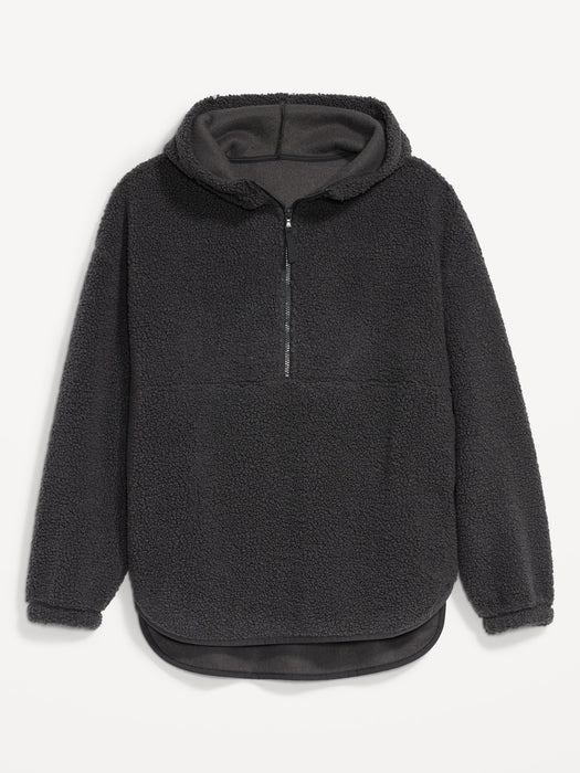 Cozy Sherpa Half-Zip Tunic Hoodie for Women - Black