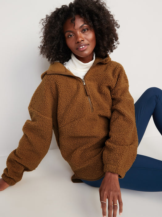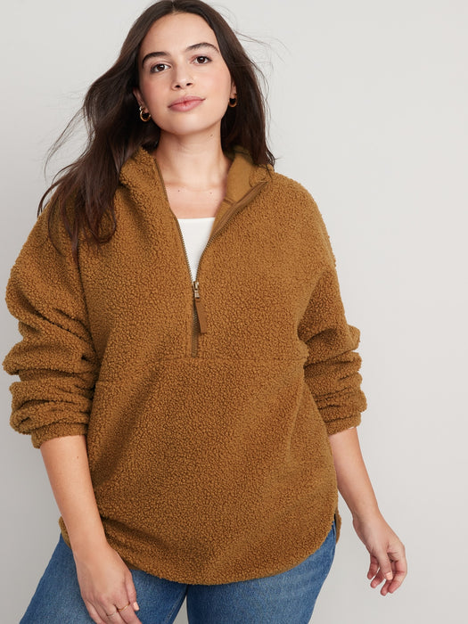 Cozy Sherpa Half-Zip Tunic Hoodie for Women